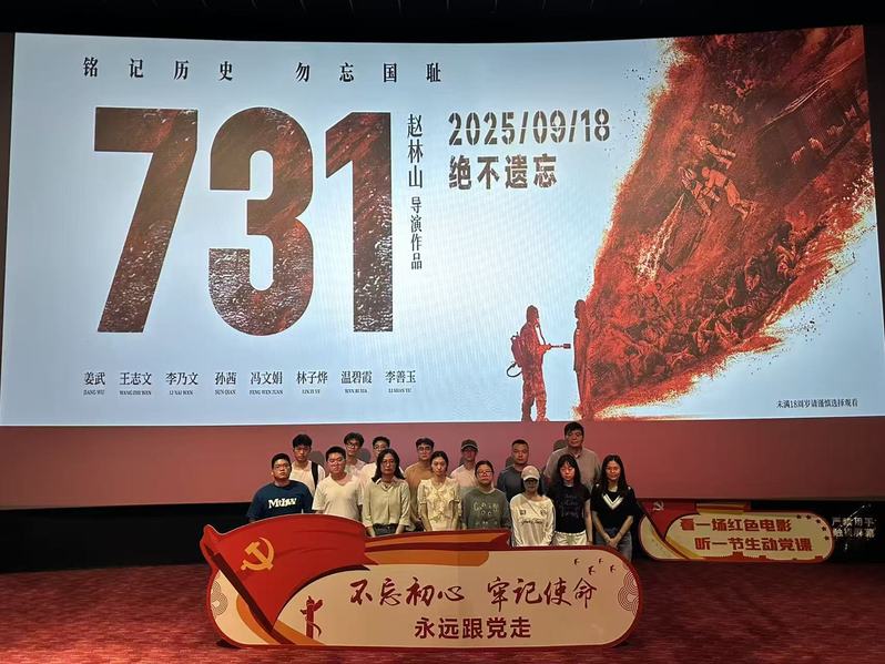 为铭记历史,传承伟大爱国主义精神,9月26日下午,安全学院学院组织师生党员代表集体观看历史题材电影《731》主题党日活动。该片以真实史料为基础,深刻揭露了战争的残酷本质与侵略者的的残暴,更彰显了中华民族在至暗时刻的不屈精神。现场氛围凝重肃穆,全体师生专注投入,被影片中展现的历史真相、不屈的民族气节所深深触动,内心受到强烈的震撼与洗礼。观影结束后,大家纷纷感叹今日和平来之不易,一致认为要以史为鉴、警钟长鸣,要把“勿忘国耻”的警醒转化为砥砺奋进的动力,以更饱满的热情投入学习与工作,在强国建设、民族复兴的伟大征程中挺膺担当。