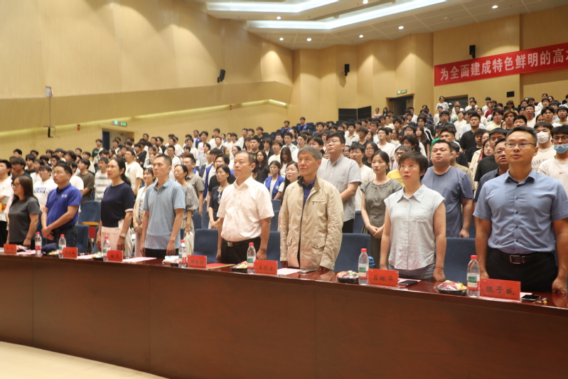 金秋送爽,丹桂飘香。在充满希望和收获的美好时节,我院于9月26日晚在立艺楼报告厅隆重举行2025新生开学典礼暨开学第一课。校关工委主任、原常州大学党委副书记、纪委书记、副校长王凯全,院党委书记吕琳华,院长邢志祥,院党委副书记陈子威,副院长杨克、郑凯受邀出席本次典礼。此外,出席本次典礼的还有各专业负责人、各系系主任、2025级教师及学生班主任。