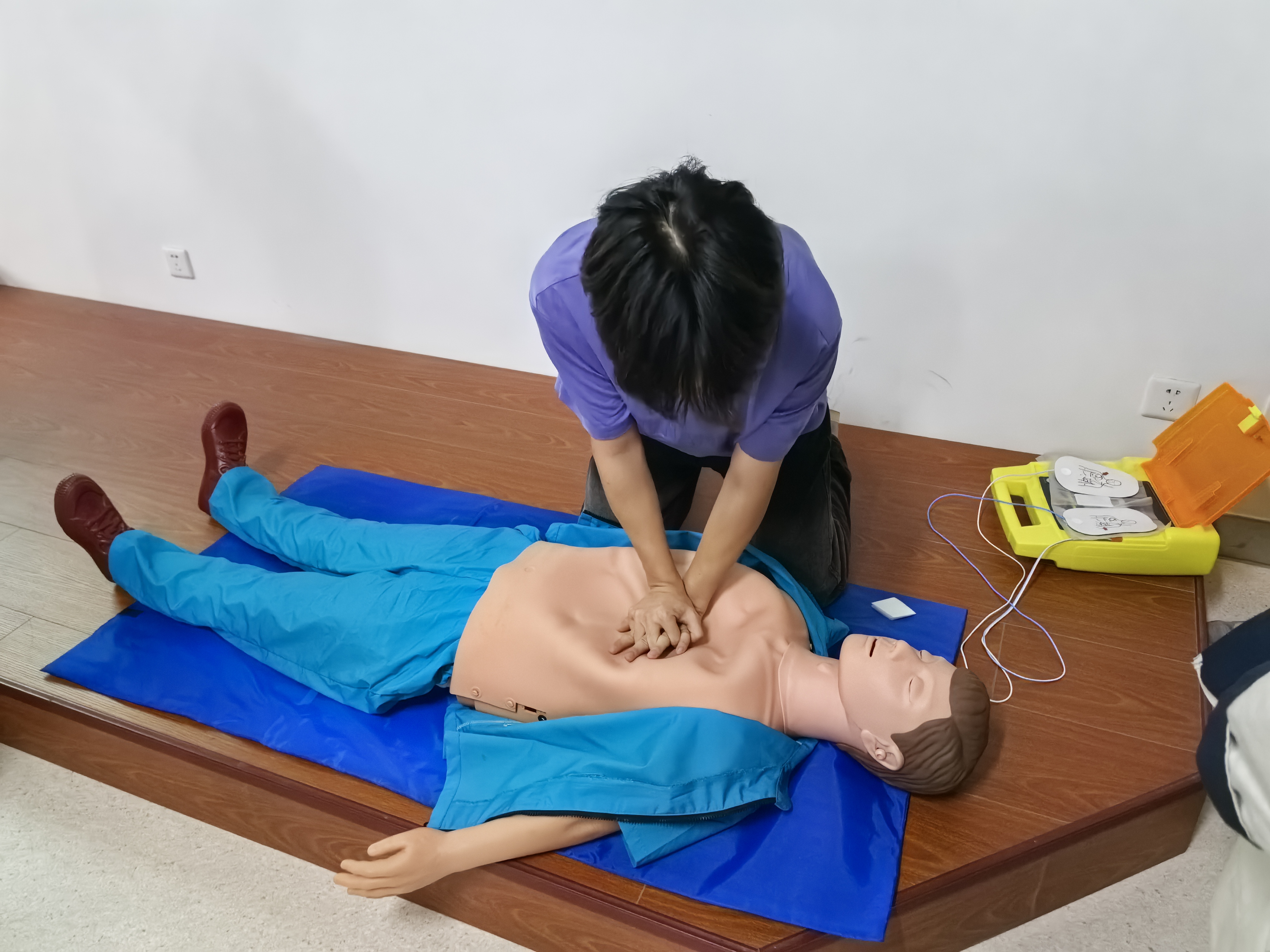 培训伊始,副队长曹忆源系统讲解了心肺复苏的理论要点,内容详实、条理清晰,为后续实操环节奠定了扎实基础。实操教学阶段,队长陈圣然与副队长曹忆源围绕按压深度、频率及人工呼吸等关键技术环节,进行了细致分解与标准演示。队员们专注聆听、认真记录,展现出高度的学习热情。在分组实操环节中,队员们依次进行心肺复苏全流程演练,从意识判断、紧急呼救,到胸外按压与人工呼吸,每一步都严格对标规范、反复打磨。队委全程跟进指导,及时纠正操作细节,帮助队员在重复练习中提升熟练度与准确性。