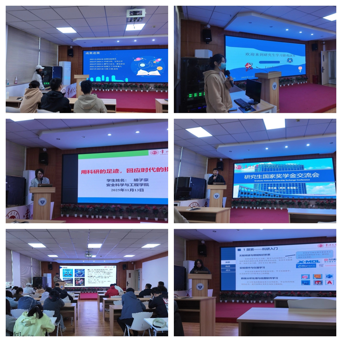 为充分发挥优秀学子的榜样引领作用,营造积极进取的学术氛围,助力研究生明确发展方向、提升科研能力,安全科学与工程学院于2025年11月13日上午在逸夫楼516会议室成功举办研究生国奖学子经验分享会。本次活动邀请谢莹、周志凤、胡子豪、黄其鑫、李乐凯、曹燕婷六位研究生国家奖学金获得者进行分享,学院各年级研究生到场学习。