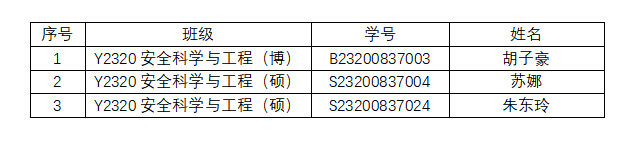 公示时间:2025年12月15日-2025年12月17日,如有不同意见,请于12月17日16:00前向安全科学与工程学院学工办反映。