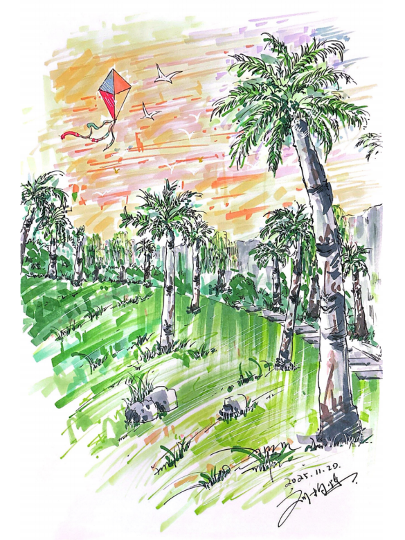 环设233-刘柏烁《暮色棕榈:校园落日遐想》
