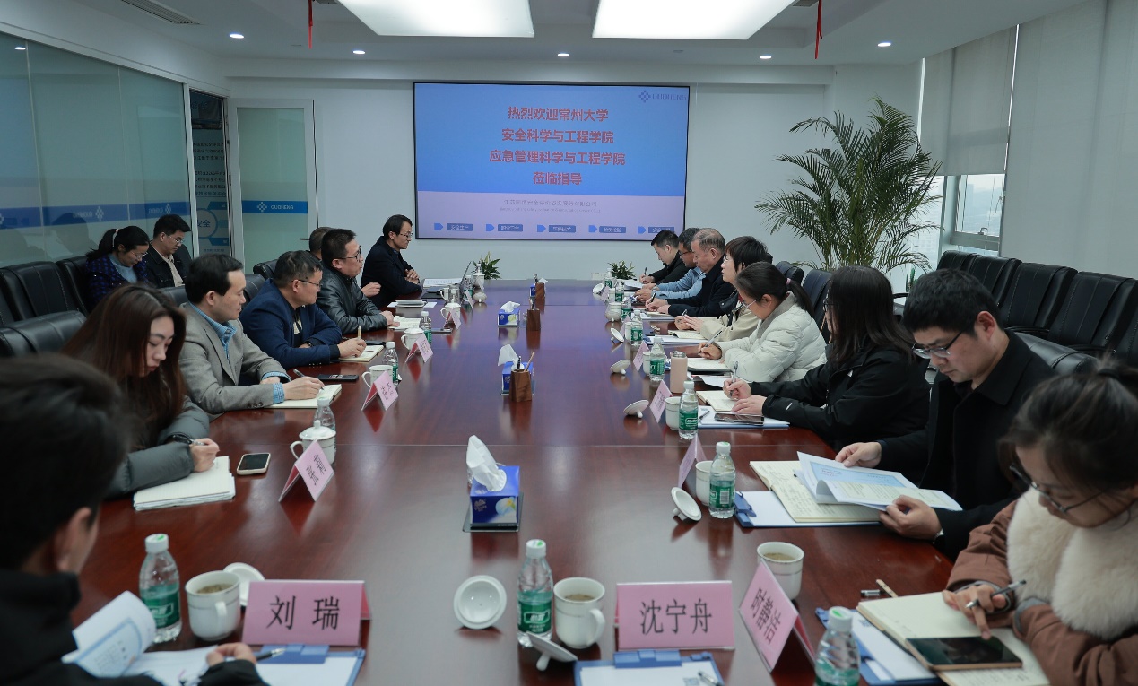 为深入贯彻落实高校毕业生就业工作决策部署,深化产教融合、校企协同育人,拓宽学生就业渠道与实习实践路径,3月24日,常州大学安全科学与工程学院党委书记吕琳华,院长邢志祥,常州大学公共安全与应急管理研究院院长欧红香,学院党委副书记陈子威、副院长郑凯及相关教师骨干赴江苏国恒安全评价咨询服务有限公司开展访企拓岗专项活动。江苏国恒安全评价咨询服务有限公司总经理尤文辉,副总经理严雷、傅先元、许杰、戴相禄,人力资源部部长张莉,以及常州大学2006届校友孔金山,2011届校友石露璐参加座谈会。