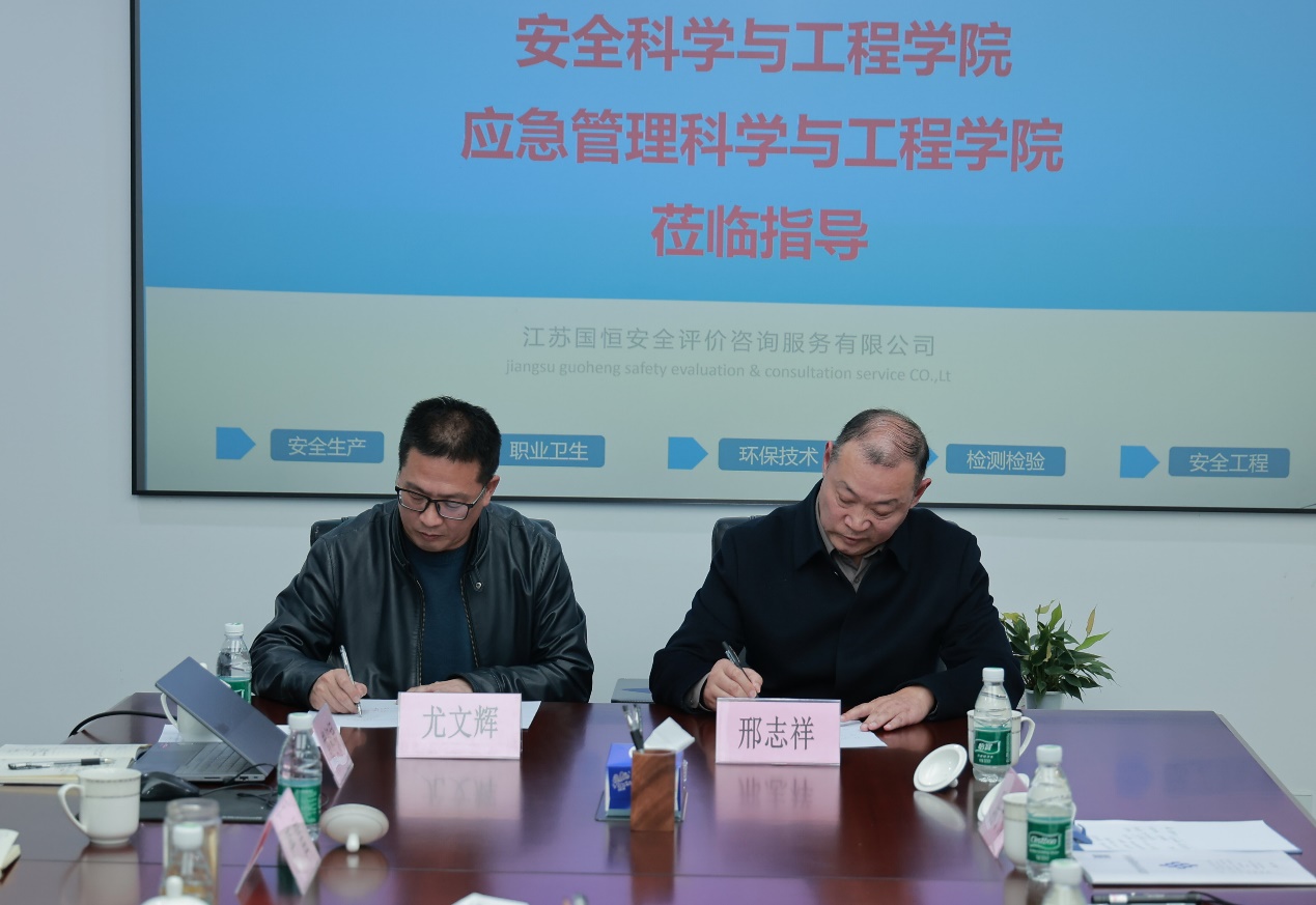 吕琳华、邢志祥代表学院向江苏国恒安全大力支持学校发展表示诚挚感谢,并详细介绍了学院的学科建设、师资力量、科研优势、人才培养模式及毕业生就业情况。邢志祥重点推介了学院在安全科学与工程领域的学科特色与科研成果,强调学院始终以服务行业需求为导向,致力于培养政治素质过硬、专业能力突出、实践能力较强的应用型安全人才,与企业的发展需求高度契合。